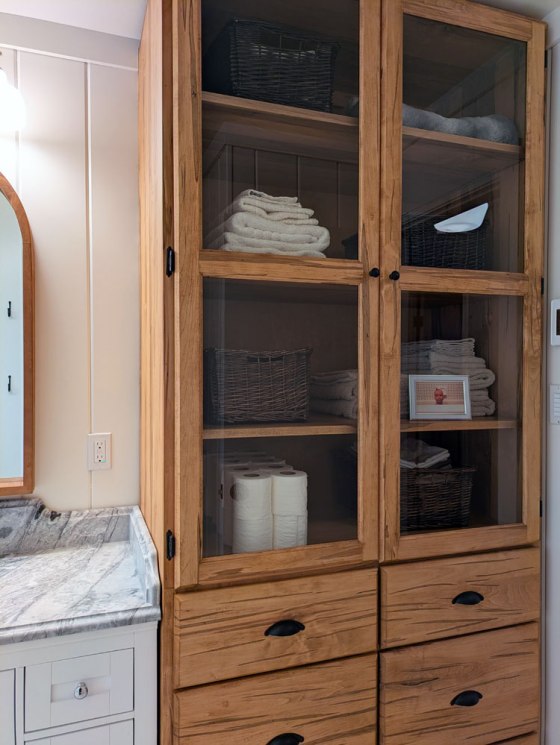 While I’m not anti-big box stores, I highly recommend visiting a store that specializes in what you’re looking for. They know the options and materials that are available, have great advice and often good prices. Along with the bathroom store, my other go-to specialists are my local lumber yard, my favourite trim shop and now my cabinet maker.