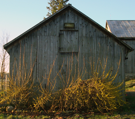 These forsythia bushes revealed themselves at the side of the drive shed. There is some old lattice tangled in them that needs some attention, but they’re a pretty addition to the property, and the cheerful blooms are a sure sign of spring.