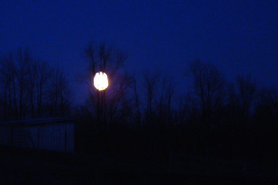 A golden moon rising over the fields