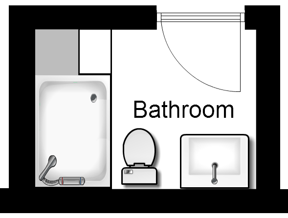 Much larger shower (hopefully not on a platform), with a ledge at the one end for shampoo and soap. The other side of the ledge will be floor to ceiling storage. Source: floorplanner.com