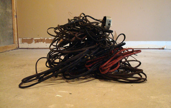 Matt made it his mission to eliminate all of this useless wiring, and he spent a lot of time tracing wires through the ceiling and along the walls so that he could pull them out.