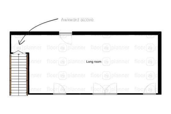 Originally in the basement, there was a closet under the stairs. I’m all in favour of closets. This one was a good way to use an awkward space and I had plans to make it a wonderful home for our Christmas decorations. I had nothing against the closet. However, the little alcove at the end of the long room to access the closet always puzzled me a little. What was I going to do with that space?