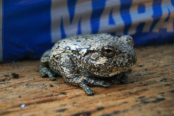 The toad that showed up on the roof two mornings in a row. If he’d brought his tool belt, we might have let him stay up there. And can I just ask, what is it with us and amphibians?