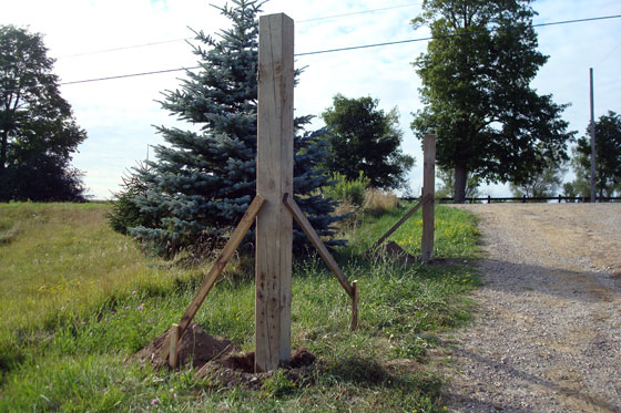 We braced the posts to hold them plumb while the concrete sets