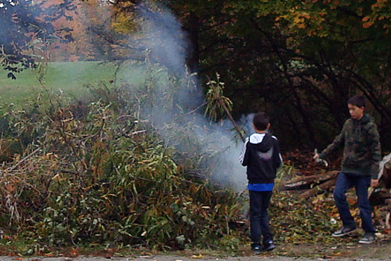 The task of burning up the massive brush pile we amassed over the past two weeks of tree trimming (to-do #16) took pretty much the whole day.
