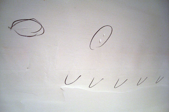 Additional symbols in my drywall lexicon include lines and once in awhile actual words–that usually still require translation.