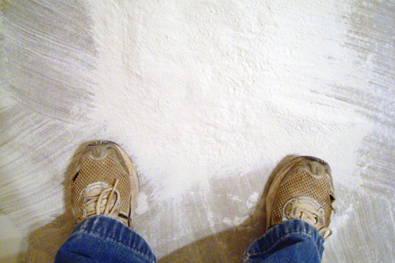 In the basement, the dust was so deep that dunes were starting to form. It took Matt and me a full afternoon to wipe down the walls and ceilings, sweep up the worst of the dust and then vacuum the remaining powder.