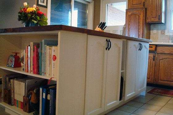 Small appliances, cookbooks, dishes and mixing bowls spent last year all tucked under the table, most of them still in their moving boxes. It was neither convenient nor tidy. For someone who loves cookbooks and will happily spend an afternoon reading recipes, the new island offers a much more accessible and attractive solution.