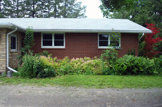 This pit is the spot where the wood stove chimney came out of the basement. We’ve removed the wood stove, patched the hole in the wall and tarred the foundation. Now I need to deal with the pit. It’s about 3 feet deep and is usually home to frogs or, when I was taking the picture above, a camera shy garter snake. Perhaps this is a place to dispose of some of the rocks. Provided of course I rescue any creatures first.