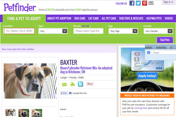 Searching online through Petfinder worked really well for us because we could specify what we were looking for. For those that don’t know, rescues and shelters from all over North America post adoptable animals on Petfinder, so in one central place you can see hundreds of dogs (or cats or other animals) who need a home.