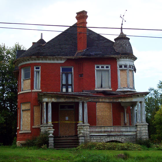 Coming into the last town before we reach the cottage, the speed limit drops and on our left is an old brick house. It sits on the crest of the hill, plywood squares covering its lower windows. The red brick is solid, while the porch sags. The paint is chipped, the shingles are flaking, the weather vane is bent. However, the charm is still evident.