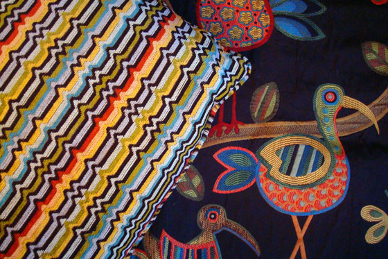 With my pattern perfected, it was time to move on to the official fabric. The search for this fabric had taken my Mom, her friend and me up and down the fabric district, in and out of every store. I was carrying one of the cases from the couch throw pillows, trying to find a fabric that was equally vibrant and equally fun. In one store, I went over to a particular bolt and said, “I love this fabric. I actually bought a few yards a year ago, just because I couldn’t bear not to have it.” My Mom’s friend said, “Hold your pillowcase up.” I did, and she said, “Julia, I think that’s your fabric.” It took me a minute, but then I saw that it was absolutely perfect.