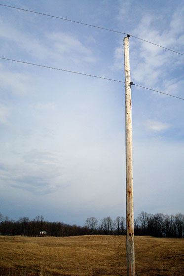 We have a very long, very expensive wire running from the solar panels on the barn, into the inverters affixed to the wall, through metres of conduit, along the 300+ foot trench and up into the box on the pole.