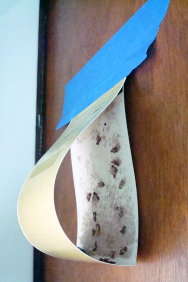Our goal was to kill one generation before they had a chance to reproduce. We were vigilant about killing any that we saw. To avoid putting more smudges on our freshly painted ceiling and walls, we kept our handheld vacuum handy to suck them up. The traps filled up, and we deployed fresh ones. They’re basically a sticky sheet of cardboard with little scent capsules that go inside.