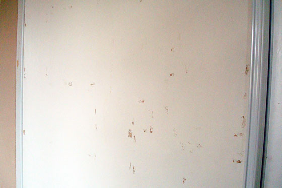 • Refresh dinged up closet doors – It appears our closet doors spent their past life as bulletin boards, except with tape rather than pushpins.