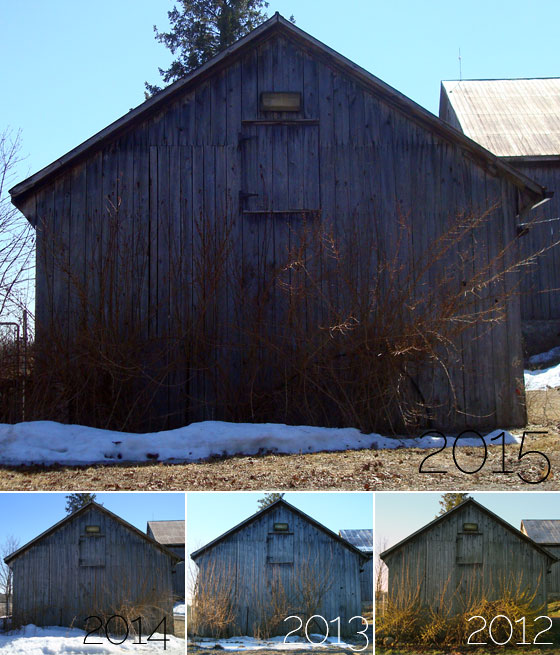 On our first Good Friday at the farm, I cut a huge bouquet of forsythia off the bushes beside the driveshed. Every spring since then, I’ve marked the start of April with a forsythia check-in.
