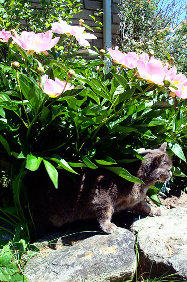 1. Ralph is a wise cat, and very cute, too! Peonies are one of my very favorite flowers. Mine always get top-heavy and fall over quickly, but that’s okay–it just gives me an excuse to cut them and bring them inside. 🙂