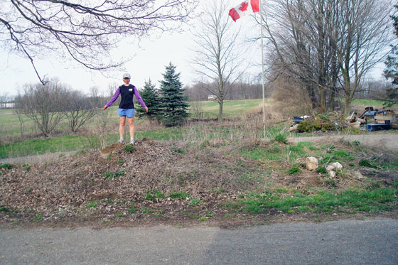Allow me to illustrate the scale of our “mountains.” (And the pile of crap at the old firepit in the background. Ugh.)