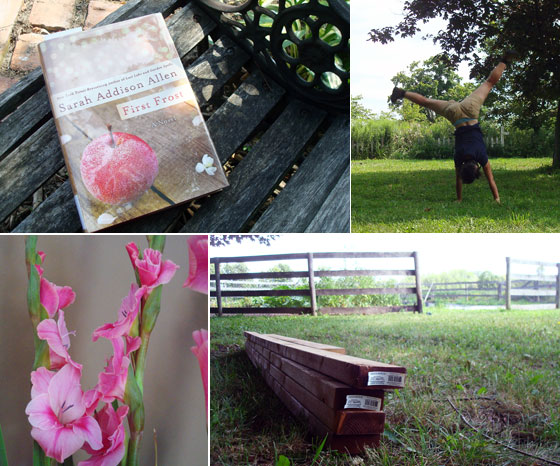 How has your week been? Any suggestions for late summer flowers to add to my gardens? Have you read Sarah Addison Allen? Did anyone else try a cartwheel?