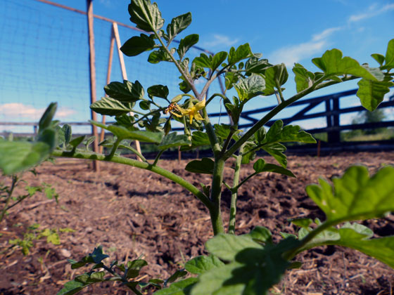 The tomatoes are planted under a simple 2×2 wood frame. I’ll add strings once the tomatoes grow a bit more.