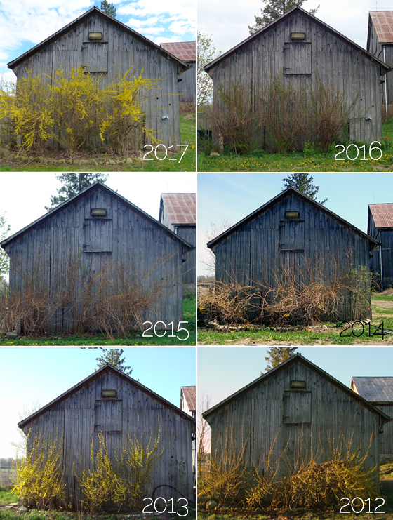 If you’ve been following the blog for awhile, you’ll know that every year I measure the progress of spring by our forsythia.