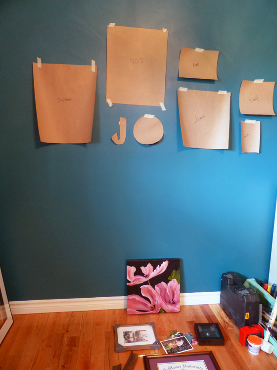 I am not a patient person, so I tried just laying it out on the floor and translating that to the wall. But it was hard to visualize. I traced each item onto paper and then taped them to the wall. I’m glad I took the time to map it out. It helped to finalize the layout–and realize that the initial placement was much too high.