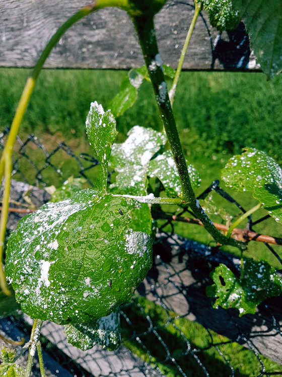 Brian’s advice was to give our vines a case of dandruff. Not really. He was much more professional than that. He suggested diatomaceous earth. I’ve heard of DE before, but didn’t know much about it. DE is a powder made from “the fossilized remains of marine phytoplankton.” Brian described it as “eating glass” for bugs. Lovely image, but sorry bugs.