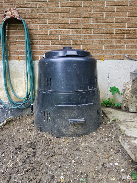 Remember when I overthought my way into adding a composter behind the house? It’s been really handy having the composter so convenient to the kitchen (the picture below is from when I first put the composter in place two years ago).