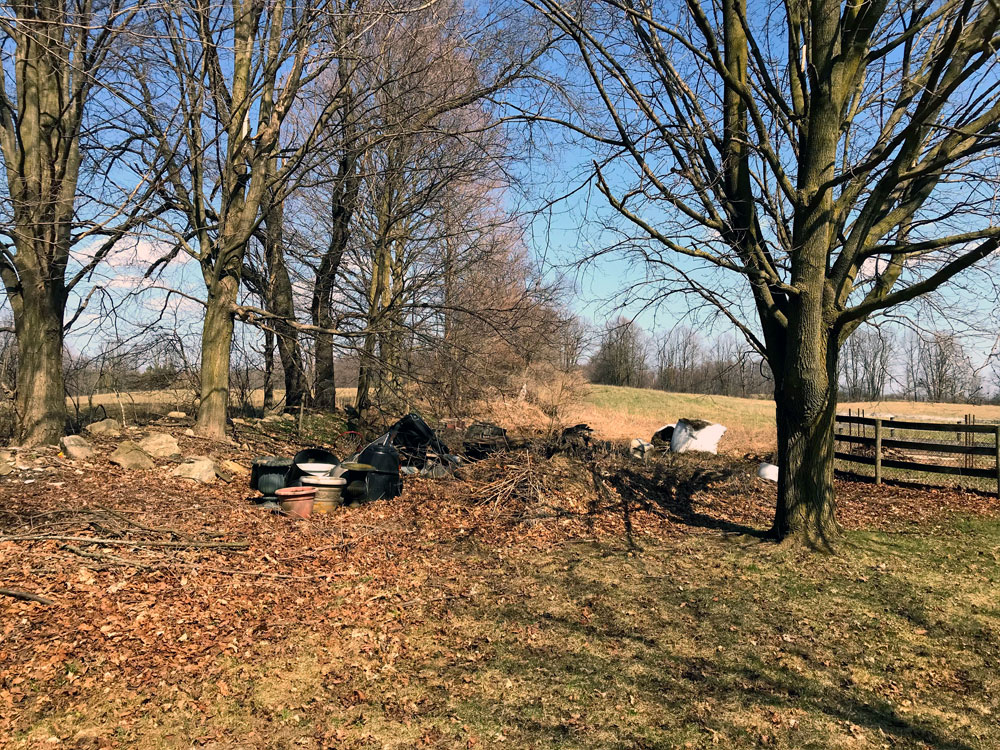 Every farm has a junk pile. For us, our junk pile was along the tree line beside the garden. As we cleaned up other areas around the property, this was the spot we stashed things that we didn’t want to deal with.