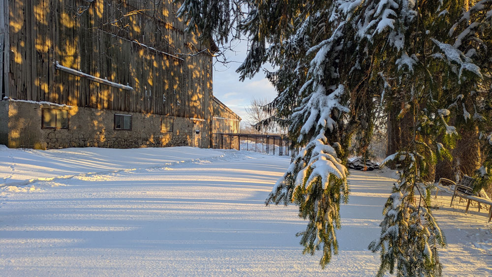 I am writing this from the couch in the living room watching flames dance in the fireplace while snow swirls outside. Later, I will put on my snowshoes and head out with Cigo for a field walk. I will stop at the barn to check on the chickens and Cedar. Then I will return to our cozy comfortable house.