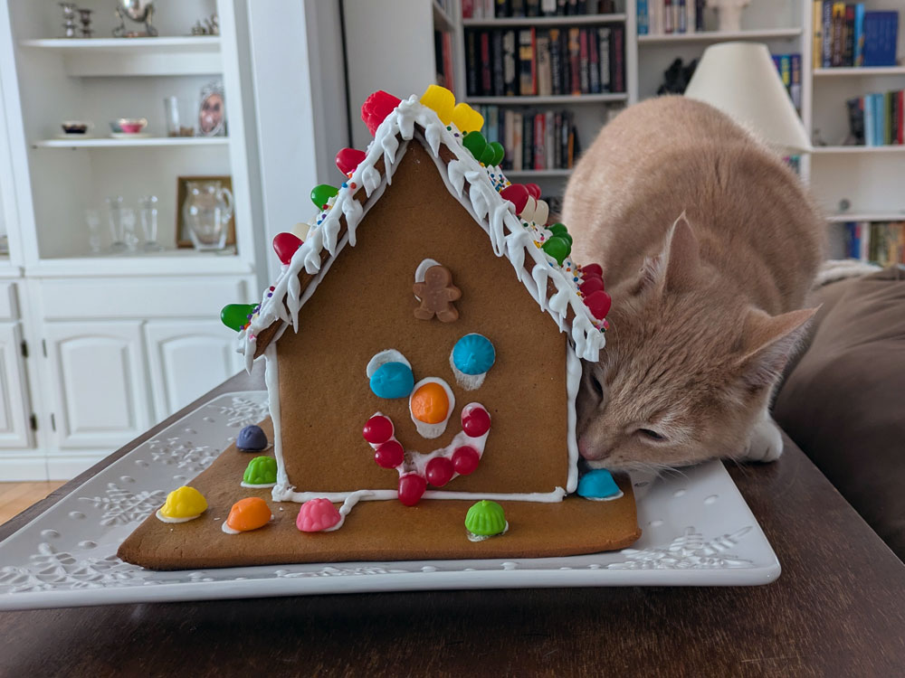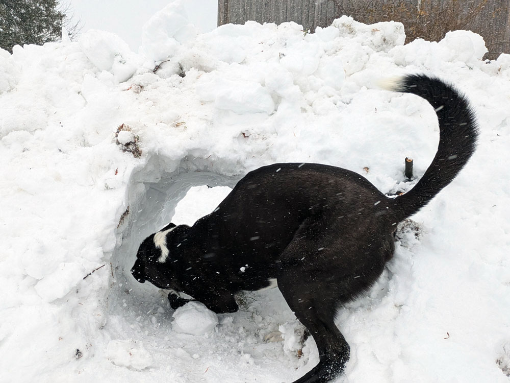 The chickens, who have gone into an untimely moult, have been staying inside. We’ve had some unfortunate feather situations and less eggs. Cigo bounds through the snow and comes home with snowballs frozen into his fur. Cedar, who has the thickest fur, rarely stays in the barn and is determined to break into the house. He comes running anytime the door opens and has perfected his timing for sneaking in while I’m wrangling buckets, baskets, leashes, dog, eggs and mitts. He’s also discovered there are sometimes treats–like our gingerbread house or my Mom’s birthday cake.