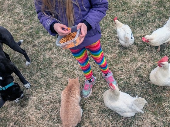 There’s been lots of fun with our domestic animals and family too. St. Patrick’s Day, March Break and birthdays gave us reasons to enjoy being together with everyone. The chickens are laying steadily, and I made my first batch of devilled eggs for a party with my friends. They were good, but it’s a lot of work for a two-bite snack. We marked Matt’s birthday as well.