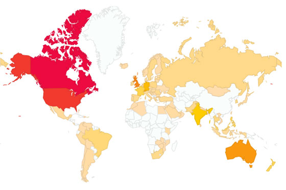 Probably the biggest surprise from the first year has been all of the different places visitors have come from–94 countries in all.