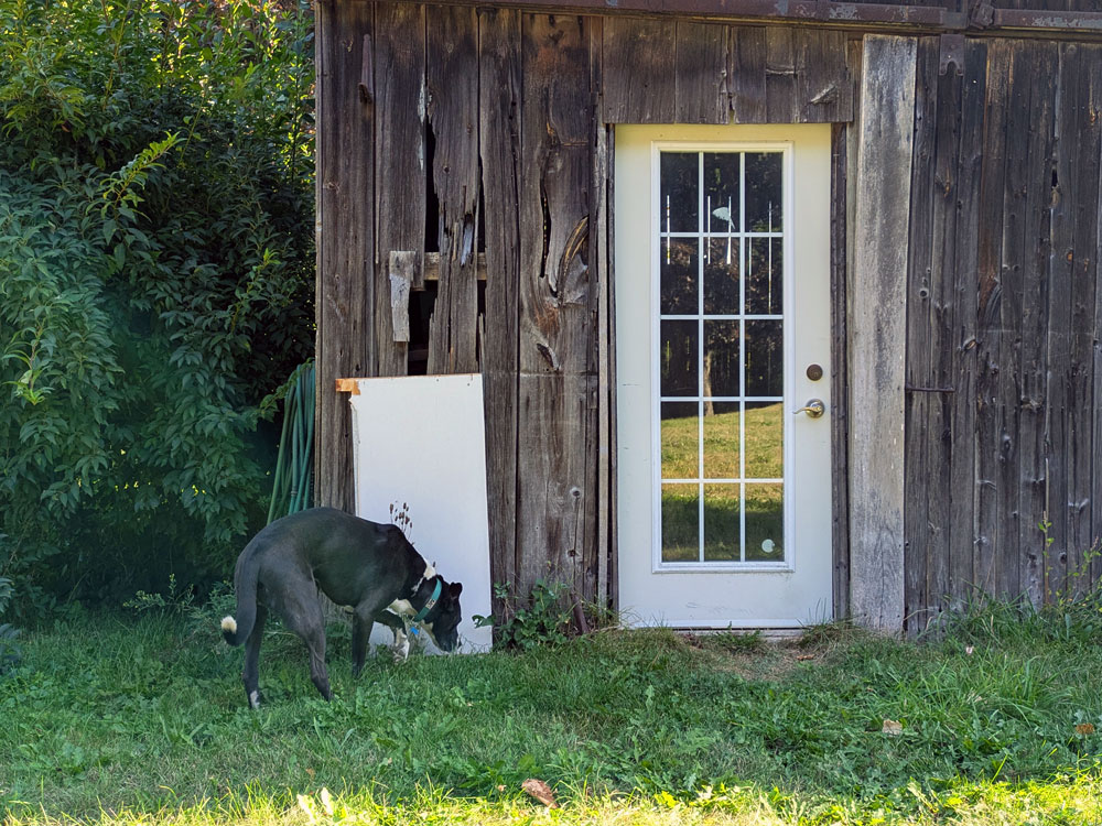 My final task is back at the barn. I uncovered a broken window on the back of the barn in the spring, so that the swallows would be able to get into the barn to nest. It worked well, but I now need to close it back up. I’d like to make a shutter so I can open the window again next spring. However, in the interest of time and simplicity, my “shutter” may be a piece of plywood I screw in place for now.