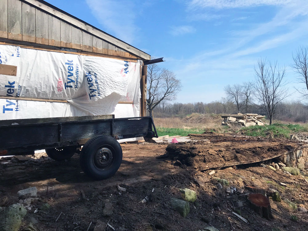 The last trace of the 100-year-old coop disappeared last month when the crumbling foundation became part of our (now massive) rockpile behind the barn. It was a huge job, and I was grateful that our landscapers were able to handle it while they were here for our patio construction. Next up, the building phase, starting with a new wall for the (still massive) gaping hole in the side of the barn.