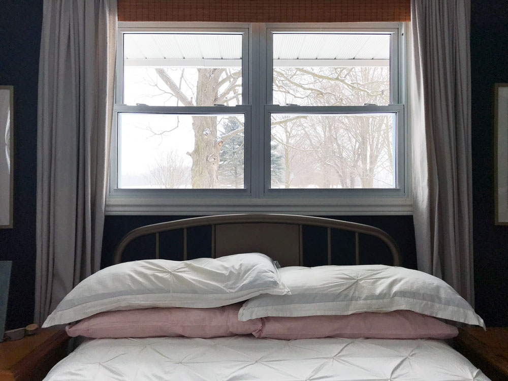 Window treatments – I ordered new curtain rods which have already arrived. Blinds are on order. I need to sew a blackout lining for the existing dropcloth curtains. Then install my layered window treatments.
