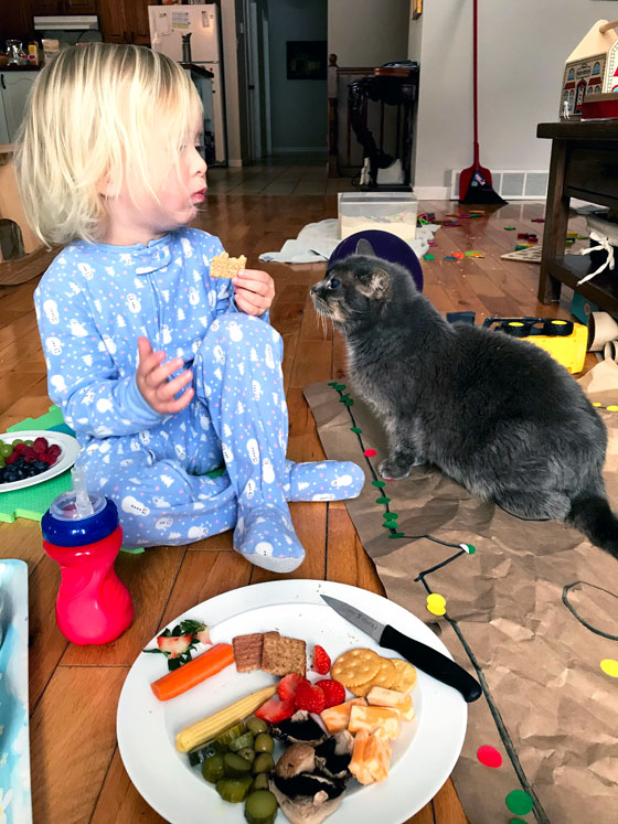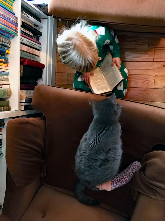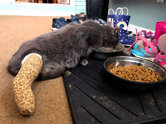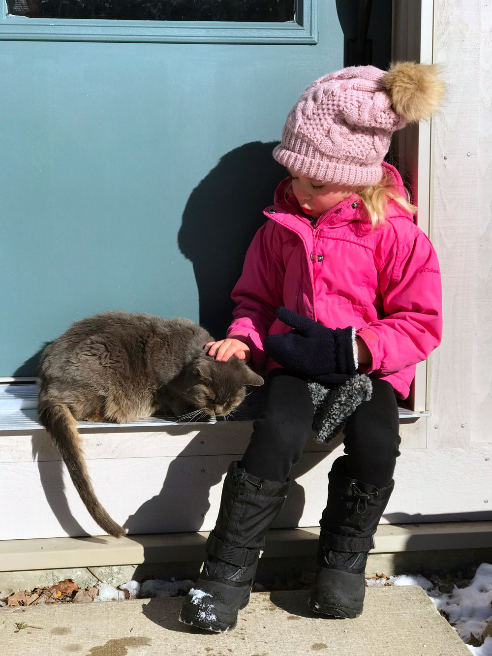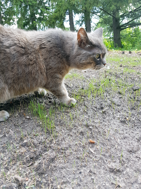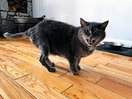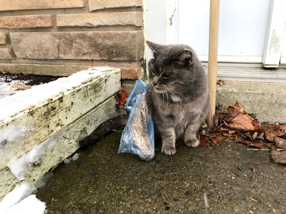 They already caught their first mouse. I’m not sure who gets the credit. (This is Cedar with it after I threw it outside.)