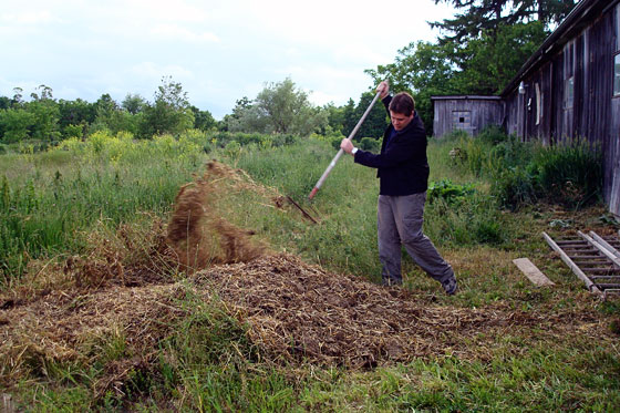 Then I covered that with a layer of straw mulch that has been composting in the garden since last fall. I was surprised how much the straw has broken down already. I think it should be good food for the new beds.