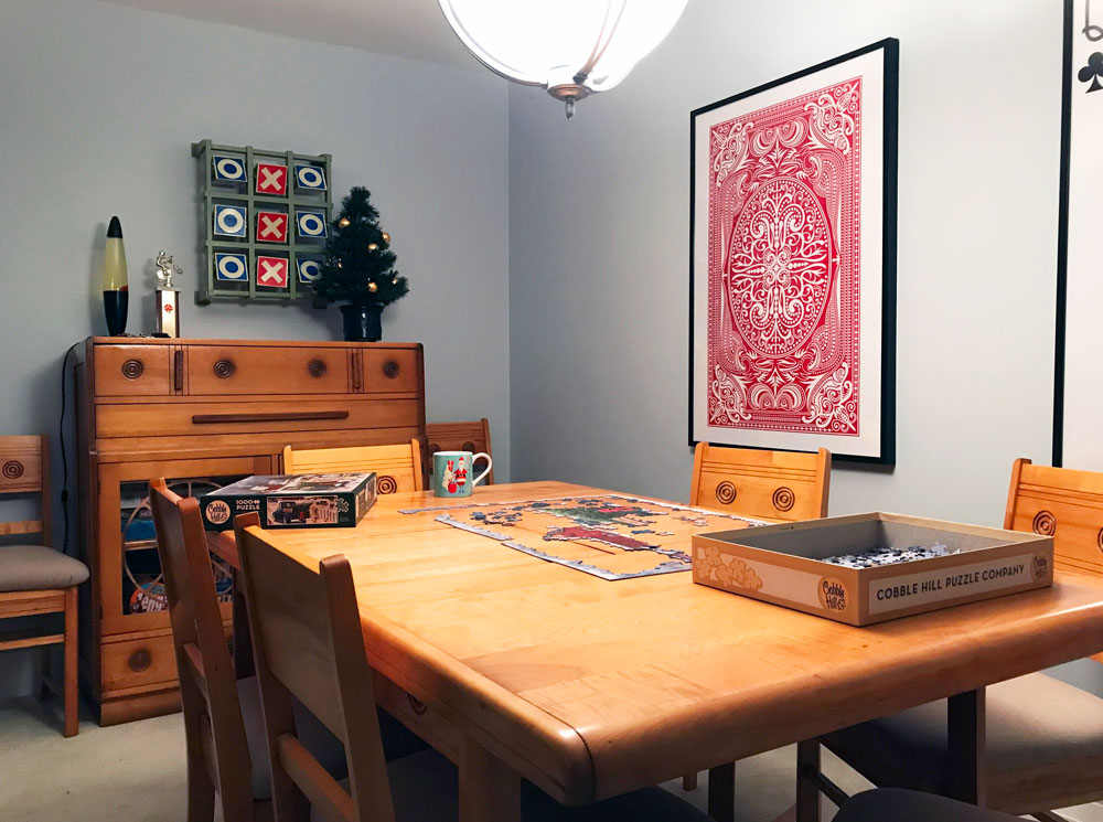 The holiday puzzle is spread out. The halls are decked. The tree is trimmed. The stockings are hung.
