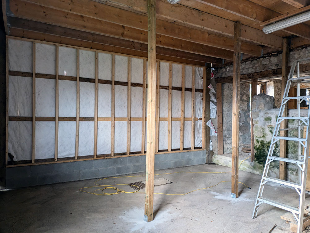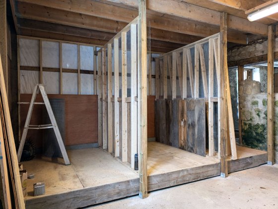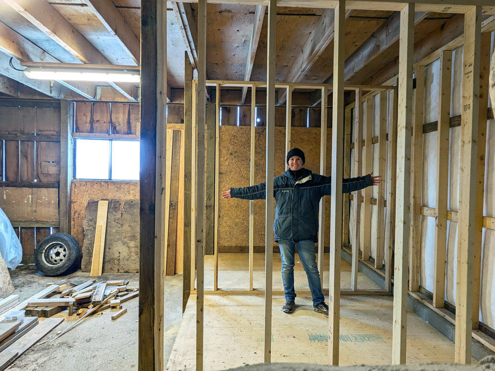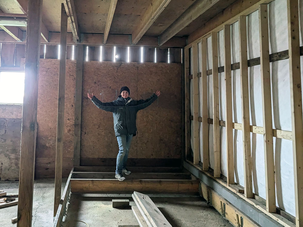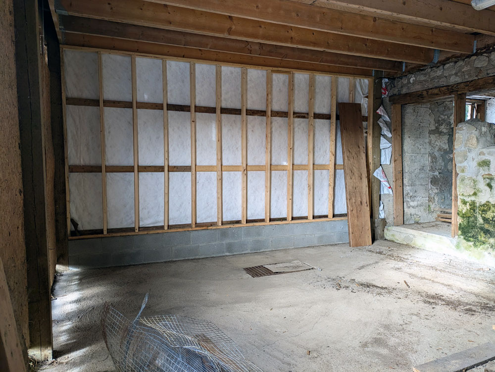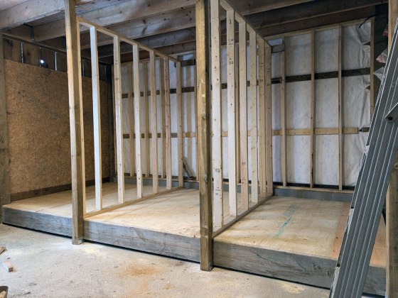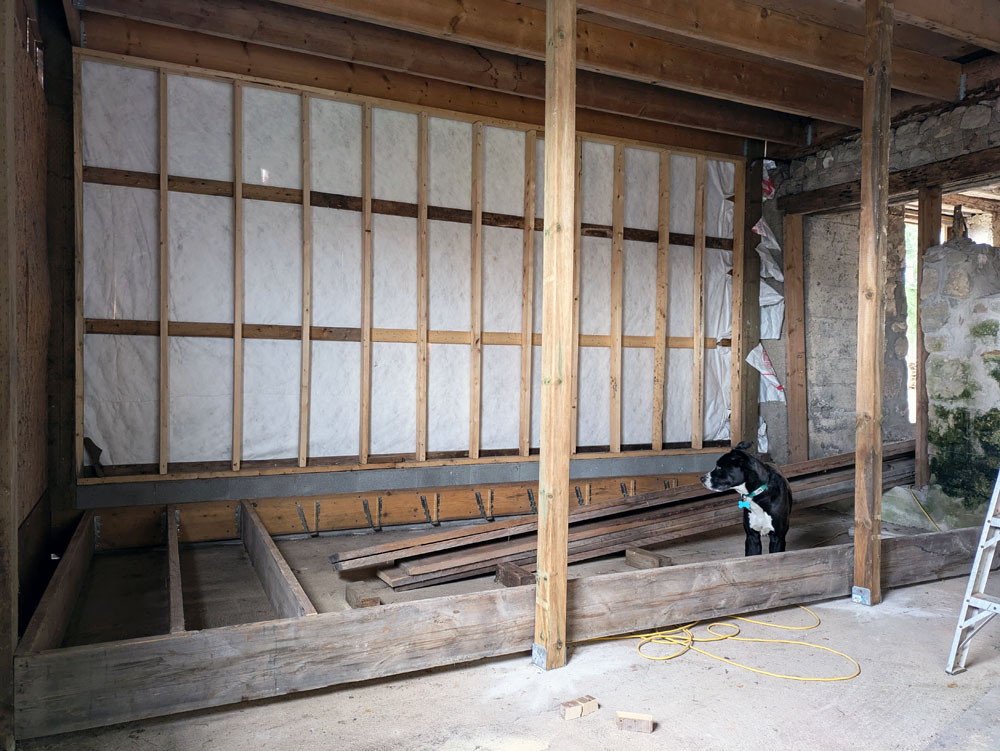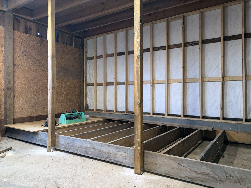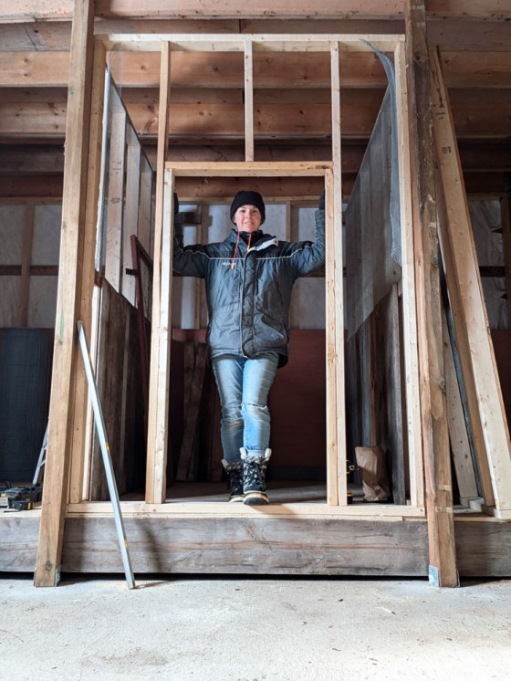 I actually built the two interior partition walls on the last day before Christmas holidays (when I finished the floor). Then, when I returned to construction in January, I put up the cladding and built the rest of the walls.