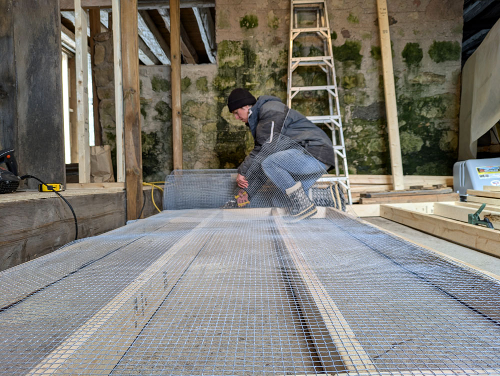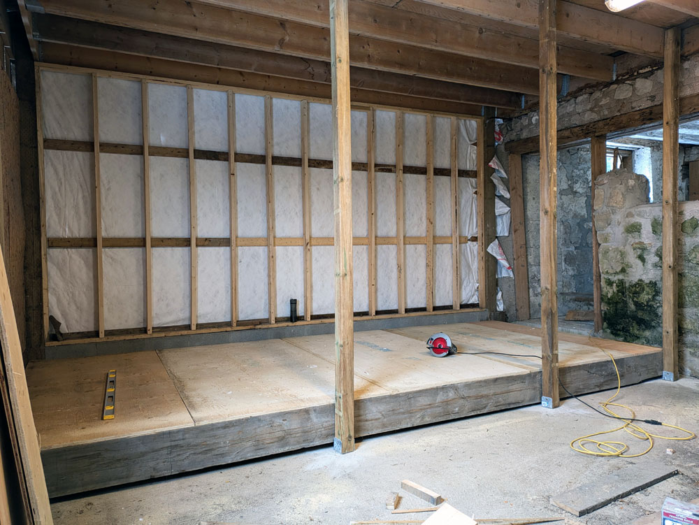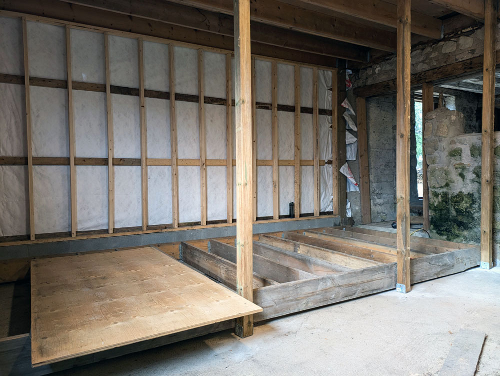 Once the joists were finished, it was simple (though heavy) to lay down some sheets of plywood and the floor was done on the last day before Christmas holidays.