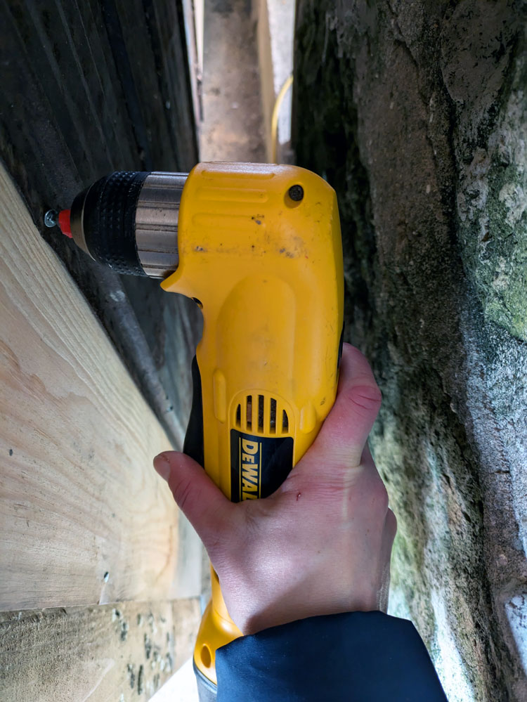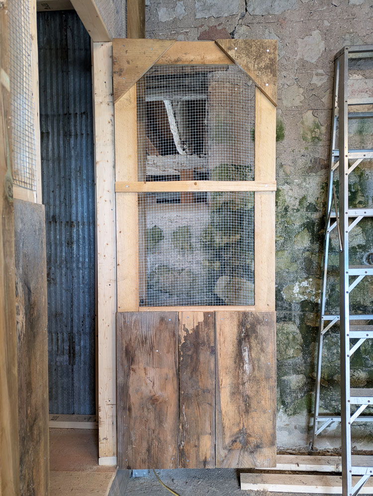 For a reminder, this spot in the barn foundation used to be a window. Part of the wall under the window collapsed in 2018, so anticipating the coop I had our mason reconstruct the wall into a door. He tacked some plywood over the opening, and that’s how it stayed for the past 6 years. Bananas that it’s been that long.