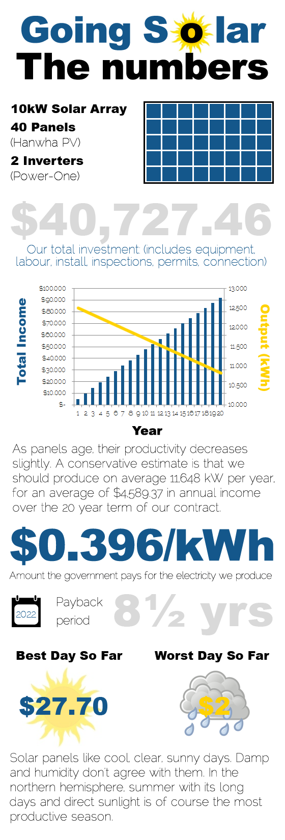 Thanks to our lower interest rate, our new payments are much lower than they were before–or they could be. Matt and I have chosen to keep our payments at the same level, which means we’re putting more towards the principle than before–$63.80 every single week. That’s more than $3,300 extra that we’re taking off the principle every year, which means the farm will be completely ours that much sooner.