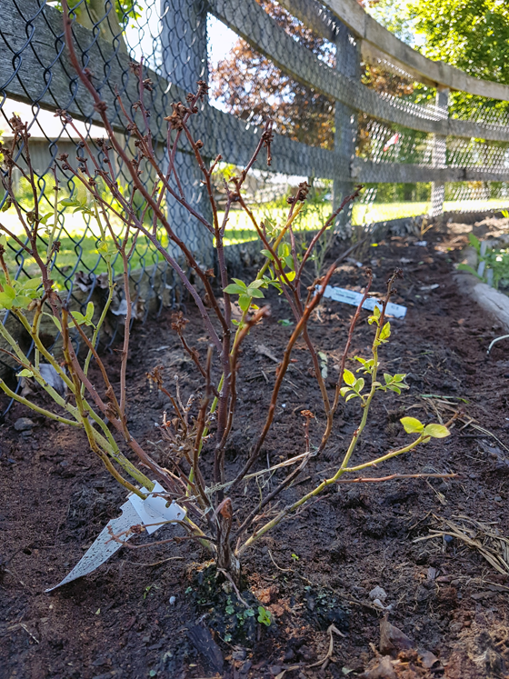 As we rotate around the ring, we come to the blackberry and raspberry rows. I planted five new blackberry bushes in the spring, and they are all alive, which feels like a great victory.