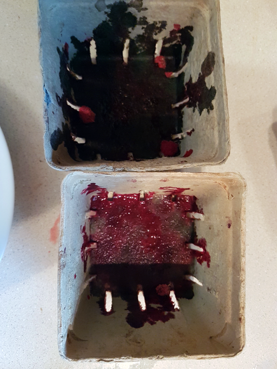 I really like the arrangement of the ring of raised beds around the outer edge of the garden. These are home to our perennials like asparagus, grapes, rhubarb, blueberries and hollyhocks. They also have all of our herbs. My favourite is rosemary. I’ve laid a few springs down, trying to encourage new bushes to root.