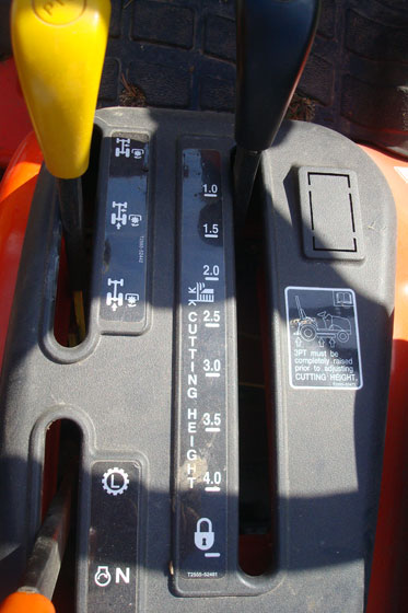 5. Lower the deck–use the three-point lever, not the cutting height lever. Give the deck a good shake to make sure it’s all the way down. You do not want this thing falling on you. It will crush you. (Not quite the same, but I have this line in my head now and I can’t resist. Plus, it’s one of Matt’s favourite movies.)