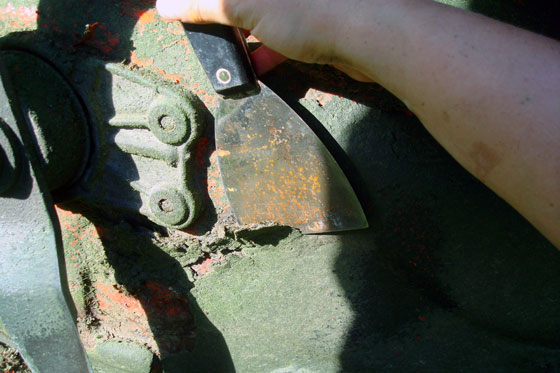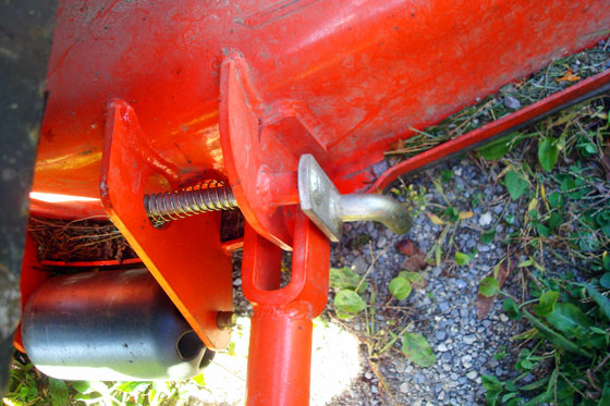 It’s a wonderful feeling when the pins pop free. You will end up with two metal arms that hold the deck to the front of the tractor. Those arms should stay with the deck. Don’t lose them. You’ll need them if you ever want to cut grass again. (And just a note for when it comes time to reattach them, the springs point in).