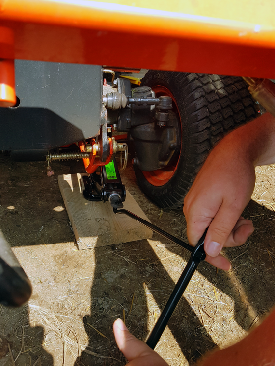 8. Push, push, push and pull, pull, pull the deck out from under the tractor, and you’re good!