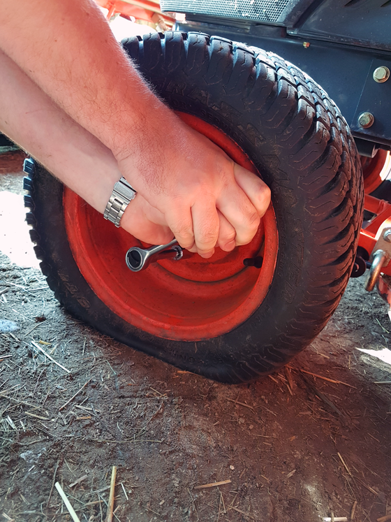 Every year, twice a year, Matt and I get up close and personal with our little tractor, Wiley. Attaching the mower deck in the spring and detaching it in the fall are pretty intimate operations.