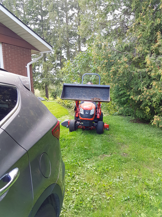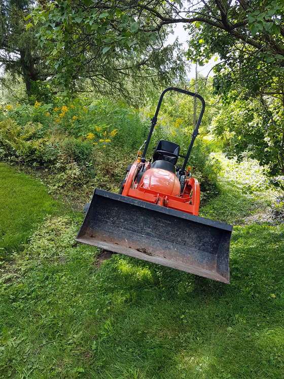 1. This whole operation will be dramatically aided by level ground (which does not exist at the farm). So, step 1: park the tractor on level ground… or at least the levelest ground you can find.